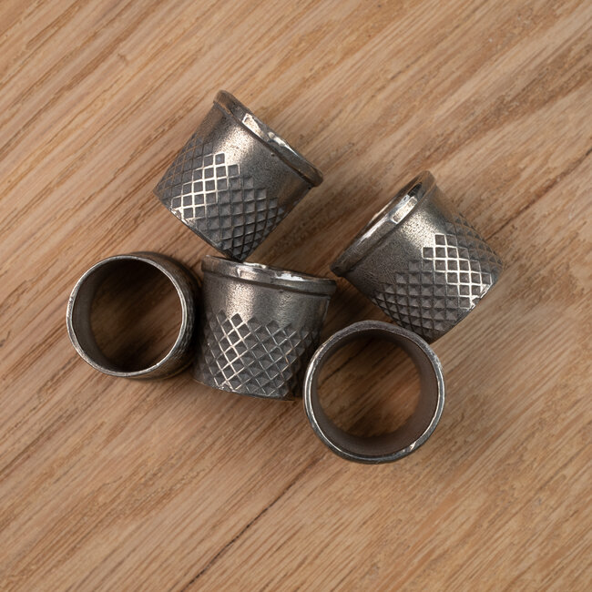 Fabriqués en Angleterre, ces dés allient solidité, précision et confort. L’intérieur est lisse, les empreintes sont profondes pour bien accrocher l’aiguille.