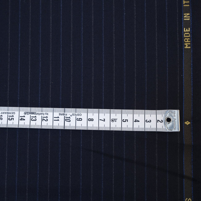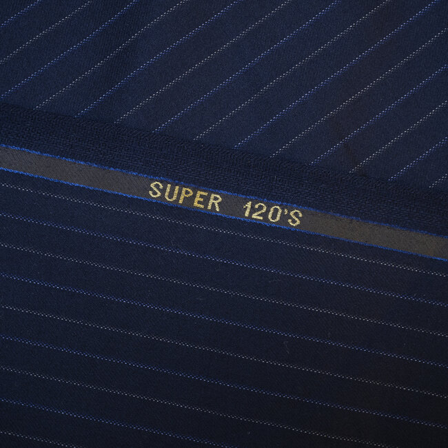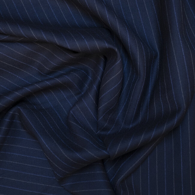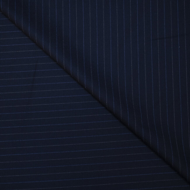 Si vous prenez 3 unités vous aurez une coupe de 1m50.Laine super 120's bleu à rayures grises et bleues (espacement 9mm). Sa composition en pure laine donne de la souplesse au drapé de ce fin tissu peigné et son poids en assure un tombé élégant.
