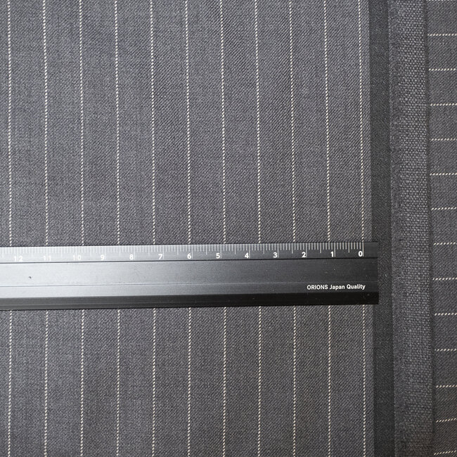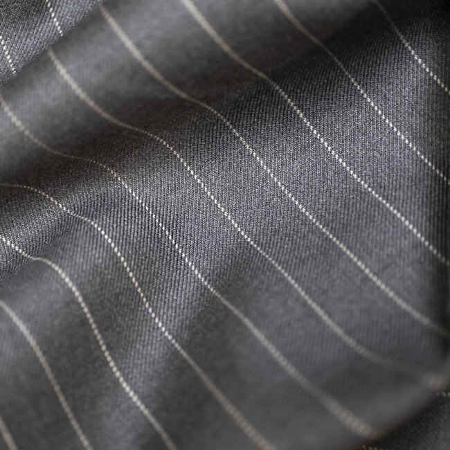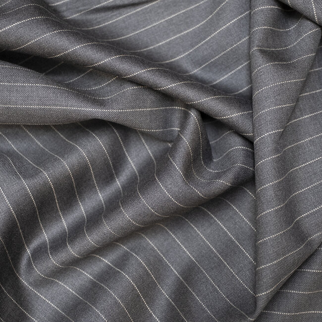 Ce lainage de chez Fintes en super 150's gris moyen avec des rayures tennis (espacement 1,2cm) sera idéal pour faire des costumes de tous les jours.