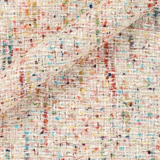 Tweed blanc/multicolore élégant et moderne de chez Carnet "Tweed collection", fabriqué à partir d'un mélange de fibres exclusives qui le rendent parfait pour les occasions spéciales où la sophistication est essentielle.