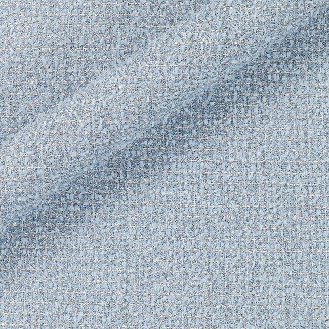 Tweed bleu clair / argent élégant et moderne de chez Carnet "Tweed collection", fabriqué à partir d'un mélange de fibres exclusives qui le rendent parfait pour les occasions spéciales où la sophistication est essentielle.