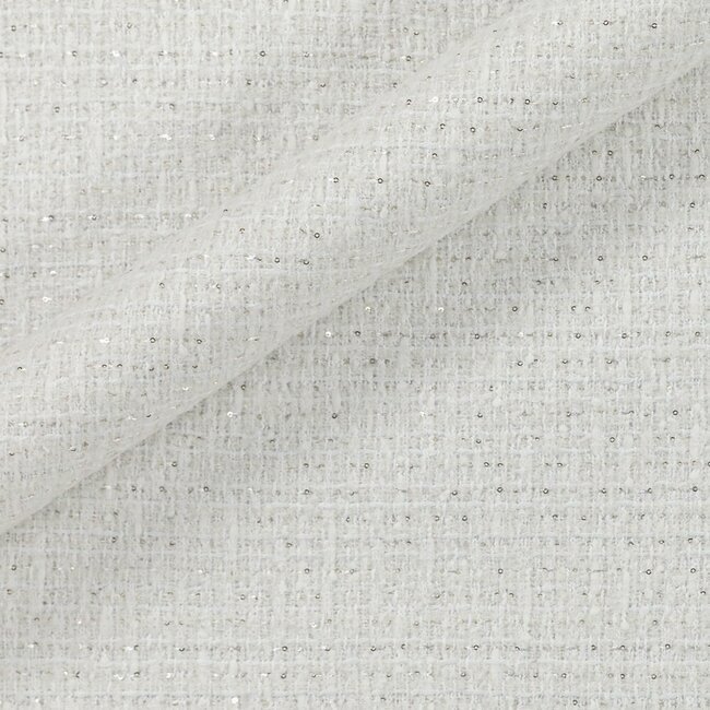 Tweed blanc élégant et moderne de chez Carnet "Tweed Collection", fabriqué à partir d'un mélange de fibres exclusives qui le rendent parfait pour les occasions spéciales où la sophistication est essentielle.